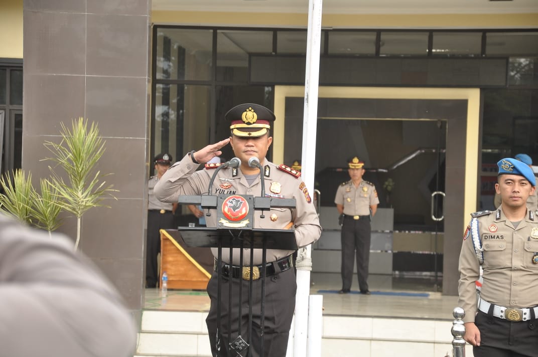 Dalam Upacara tersebut Kapolres Banjar AKBP Yulian Perdana bertindak selaku inspektur upacara dan dihadiri Wakapolres Banjar Kompol Ade Najmulloh bersama para PJU Polres Banjar dan Kapolsek jajaran