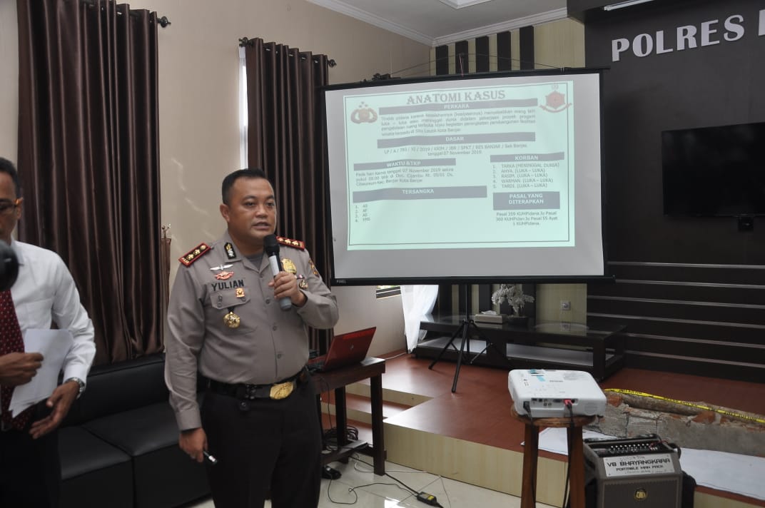 Kapolres Banjar AKBP Yulian Perdana menjelaskan, keempat tersangka tersebut berinisial AS, AF, ASA dan YMS. Mereka merupakan pengawas dan pelaksana dalam proyek tersebut.