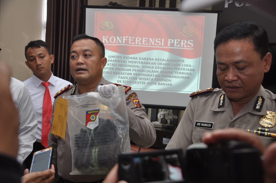 BANJAR – Polres Banjar menetapkan 4 orang tersangka kasus bangunan ambruk di Situ Leutik, Desa Cibeureum, Kecamatan Banjar yang terjadi pada 7 November 2019 lalu, dan mengakibatkan seorang pekerja meninggal dunia.