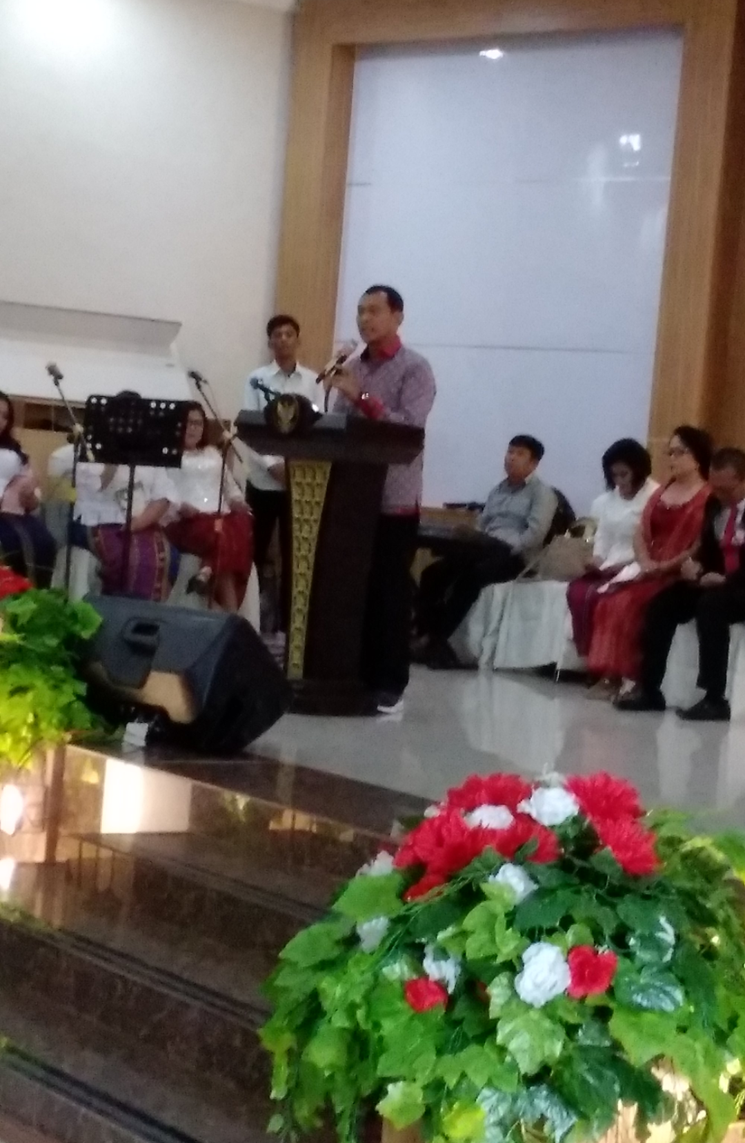Khotbah Natal yang disampaikan Pdt. Endaulin Tarigan, MTh ini, merupakan bagian dari rangkaian perayaan Natal keluarga besar Dinas Pendidikan Kabupaten Simalungun yang dilaksanakan di Aula Simalungun City Hotel, Rabu (4/12/2019).