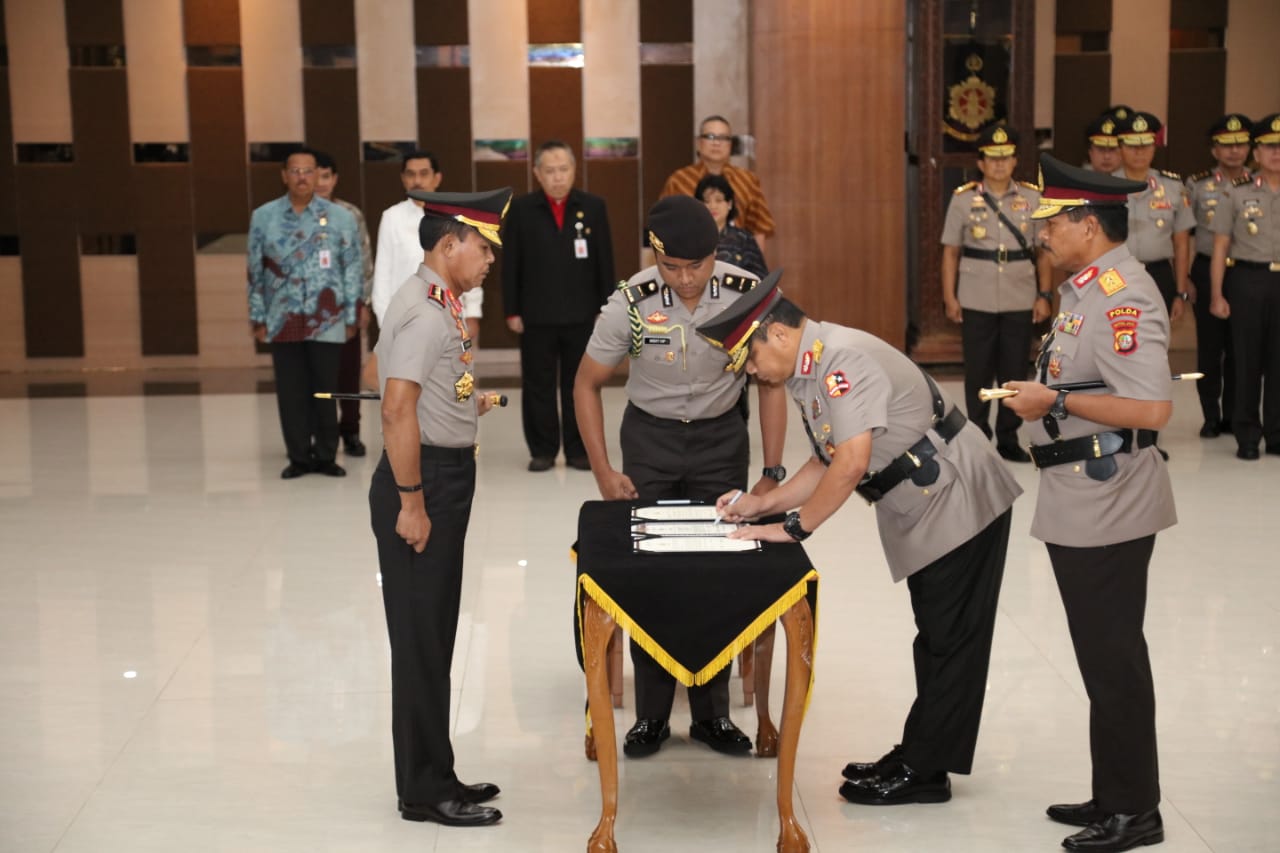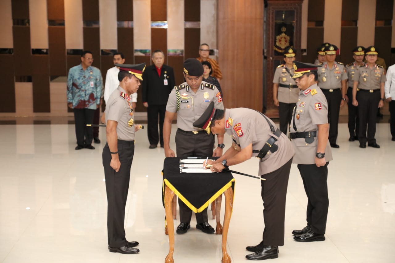 LEBAK, MOI – Irjen Pol Drs. Agung Sabar Santoso, SH., MH, resmi dilantik sebagai Kepala Kepolisian daerah (Polda) Banten menggantikan Irjen Tomsi Tohir yang berpindah tugas sebagai Kapolda NTB. Pelantikan dan serah terima jabatan dipimpin langsung oleh Kapolri Jenderal Idam Azis di Gedung Bareskrim Polri, Jakarta Selatan, Selasa (7/1/2020).