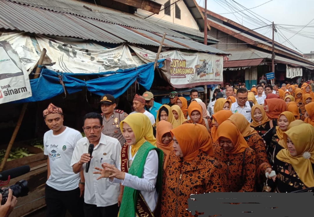 Kunjungan istri Gubernur Jawa Barat Ny. Atalia Praratya Ridwan Kamil beserta rombongan dari Dinas Perdagangan Provinsi Jawa Barat dan BPOM Jawa Barat menambah keramaian Pasar Cikurubuk pagi tadi, Rabu (15/01/2020).