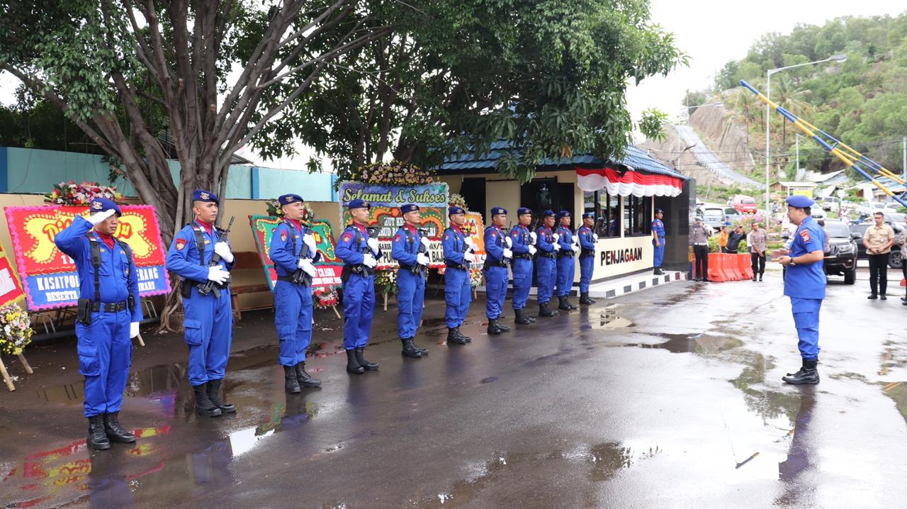 Tiba di Mako Ditpolairud Polda Banten, Kapolda Banten dan disambut jajar hormat oleh para anggota Ditpolairud Polda Banten yang menggunakan Baju dan Baret benhur kebanggaannya.
