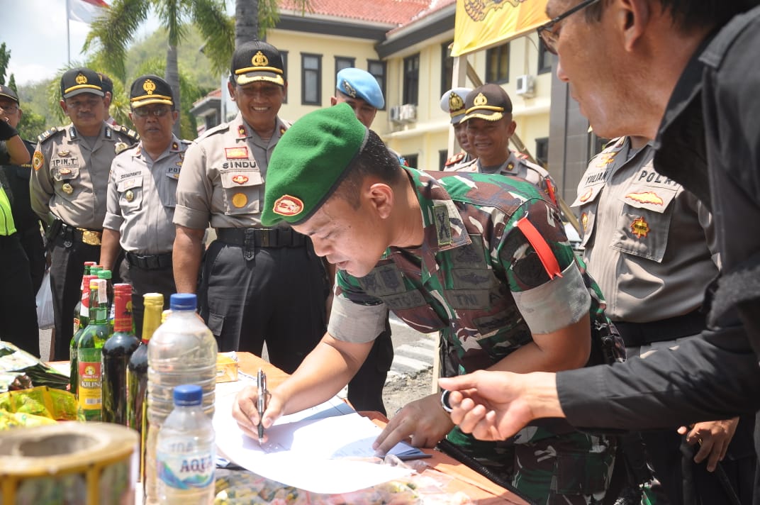 Kegiatan pemusnahan barang bukti tersebut diawali dengan penandatanganan berita acara pemusnahan oleh Kapolres Banjar, Dandim 0613, Wakil Walikota Banjar, Dansubdenpom, dan Kadis Pol PP.