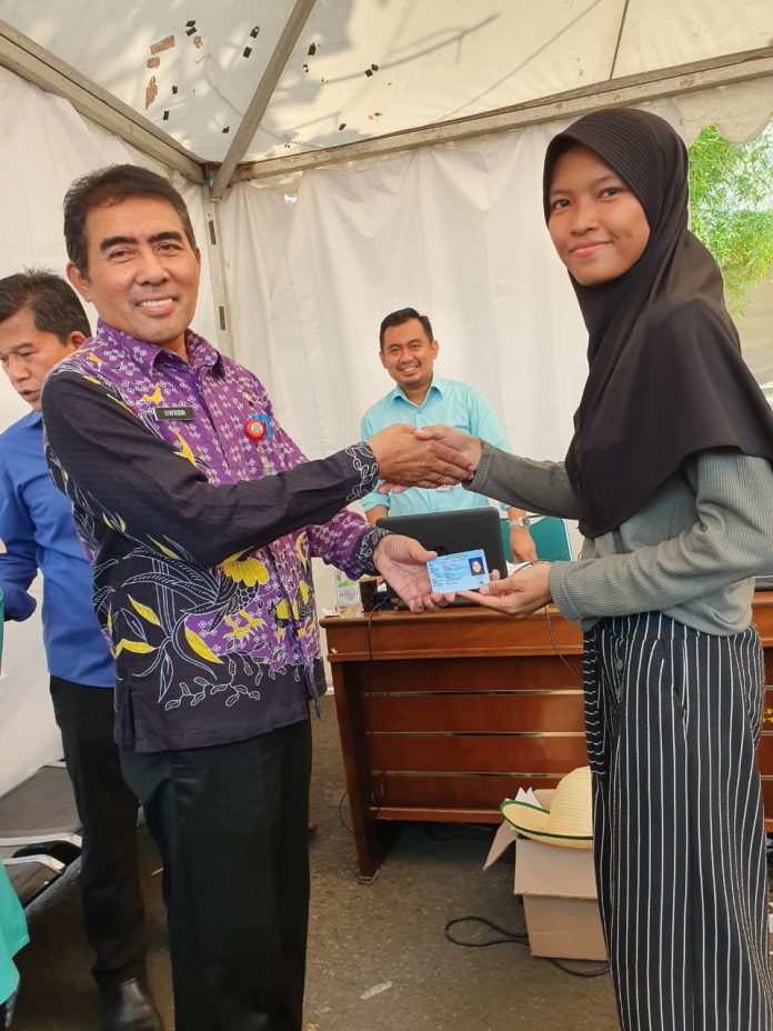 TIGARAKSA, MOI – Dinas Kependudukan dan Pencatatan Sipil (Dukcapil) Kabupaten Tangerang mengadakan pelayanan KTP elektronik, Kartu Identitas Anak (KK), Kartu Keluarga (KK), Akta Kelahiran langsung jadi satu hari.