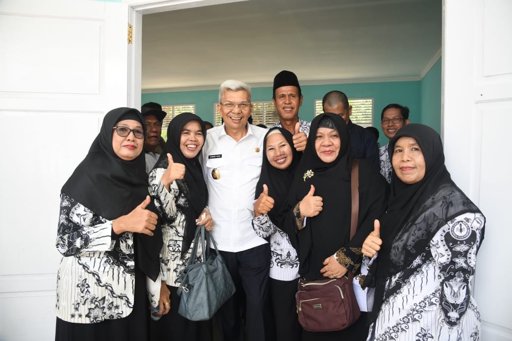 Tanpa dikomando, guru yang sebagian ibu-ibu tersebut langsung bergantian mengajak swafoto Wagub tersebut. Dengan sabar, ia pun menyalami para Guru dan mengusap-ngusap kepala beberapa para siswa yang ditemuinya itu sembari memberikan petuah.